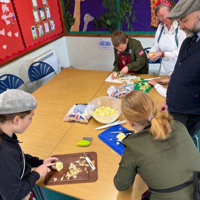They have been making pasties with rations that would have been available to them in WWW2 times and they are busy cooking at the moment and smell delicious!